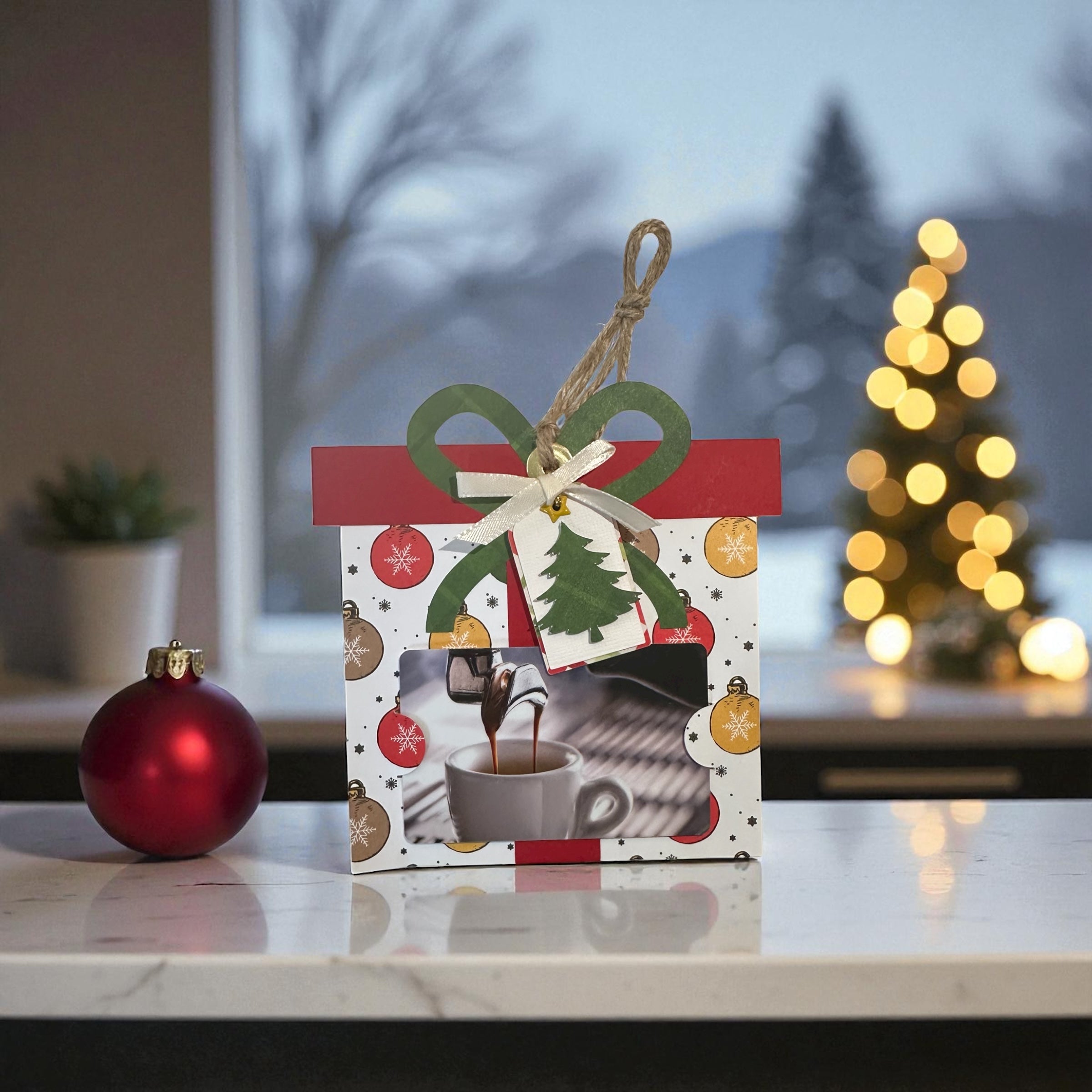 Make every gift card feel like a present with this handcrafted holiday gift card holder designed to look like a festive wrapped box. Decorated with cheerful ornament patterns, layered cardstock details, and a 3D bow with a tiny Christmas tree tag, it’s the perfect blend of craftsmanship and holiday spirit.